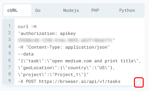 - Create a task by either running the provided cURL command in CMD or sending a request to the