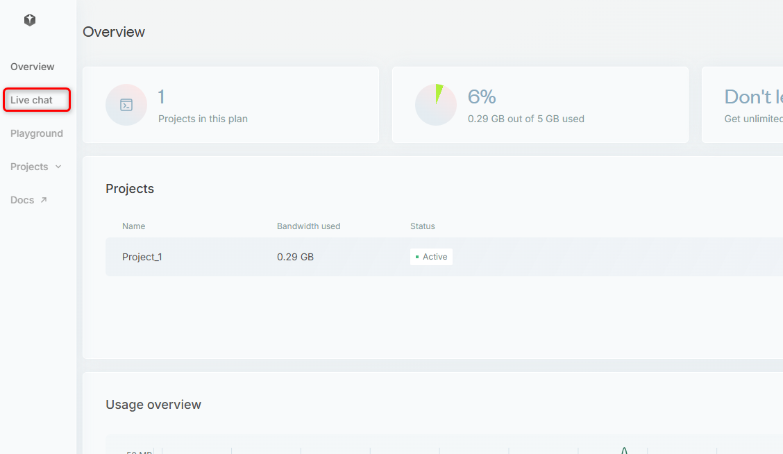 Navigate to the Live chat section on the left sidebar and start a new conversation.